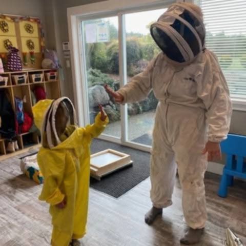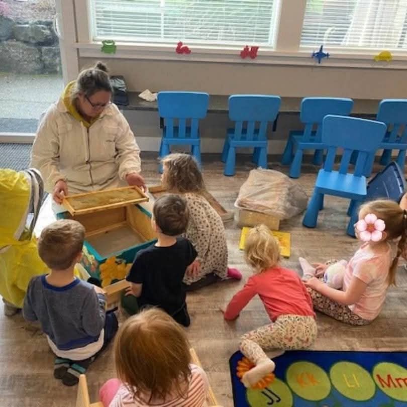 What started as just a fun way to share her love of bees with her kids daycare blossomed into Rosebay Bees, where she now offers her bee visits to daycares and classrooms around Vancouver Island. In the coming weeks she has plans arranged a full day of visits in Lake Cowichan classrooms and a workshop where her children now attend at Nanaimo Christian School to show the kids how to harvest the honey from the hive. Along with her teaching, she is also gifts and sells the proceeds of her helpful bees in the form of candles, honey, lip balms, salves, and propolis tincture, mostly on Facebook marketplace but has tried as a market vendor on a few occasions. This coming weekend she will be offering a workshop, Kids and Bees! with Lucienne Siedlecki, at Nanaimo Seedy Sunday and her husband and children will be tending her vendor booth.